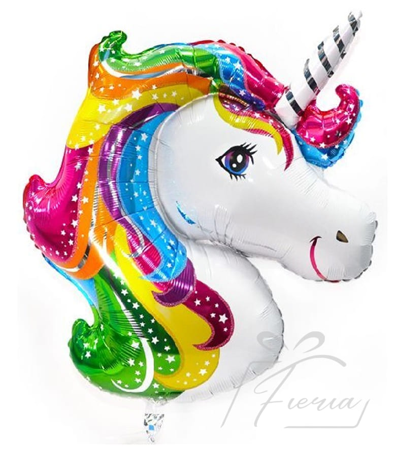 Фольгированая фигура, голова Единорога радужный