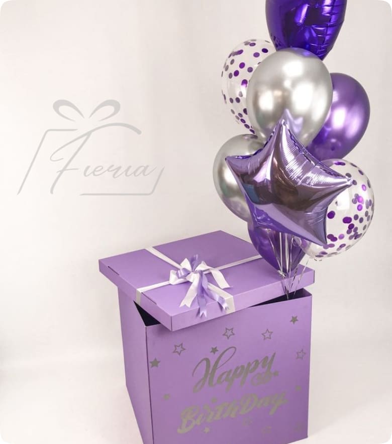 Коробка белая с надписью и бантом цифра 2 хром 2с конфетти 2 пастель 2 сердце. Цветовую гамму можно изменить.