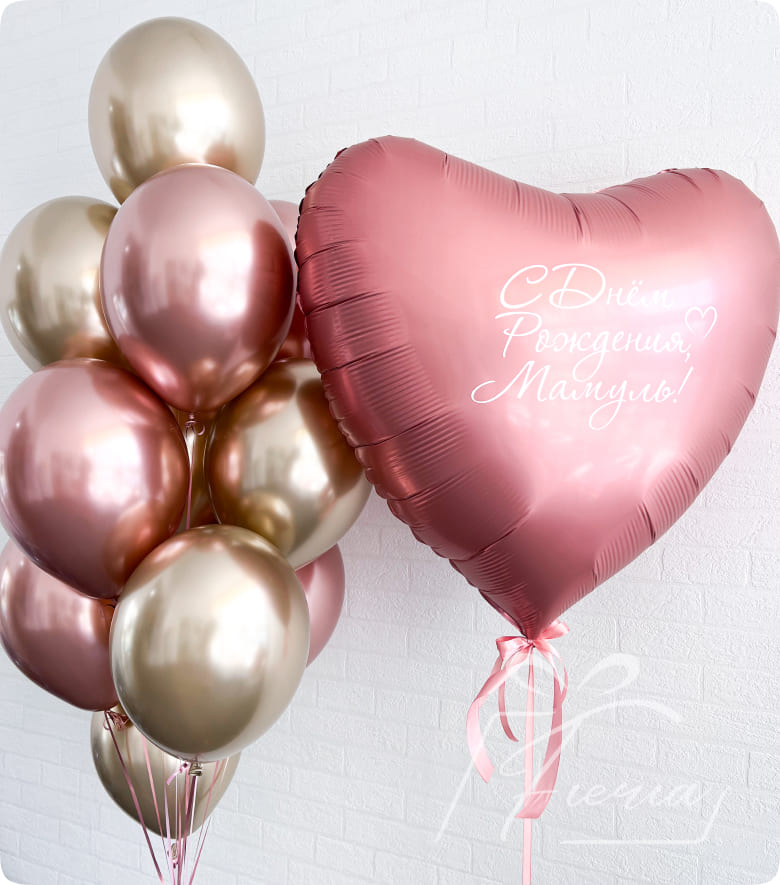 Шар дабл-стафф с надписью цифра двойная сердце 2 хром 4 пастель