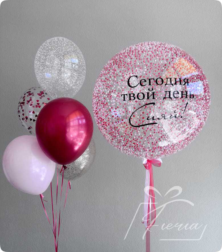 Шар пастель с надписью и лентой тассел 3 хром 4 пастель