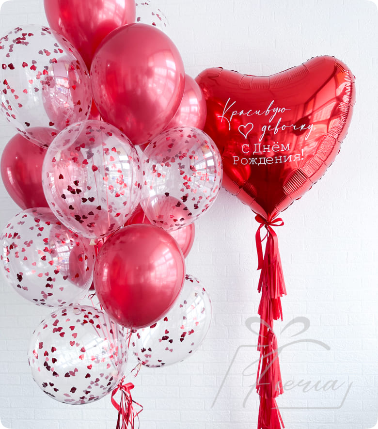 Шар бабл с надписью 2 сердце звезда 2 хром 4 пастель 4 браш
