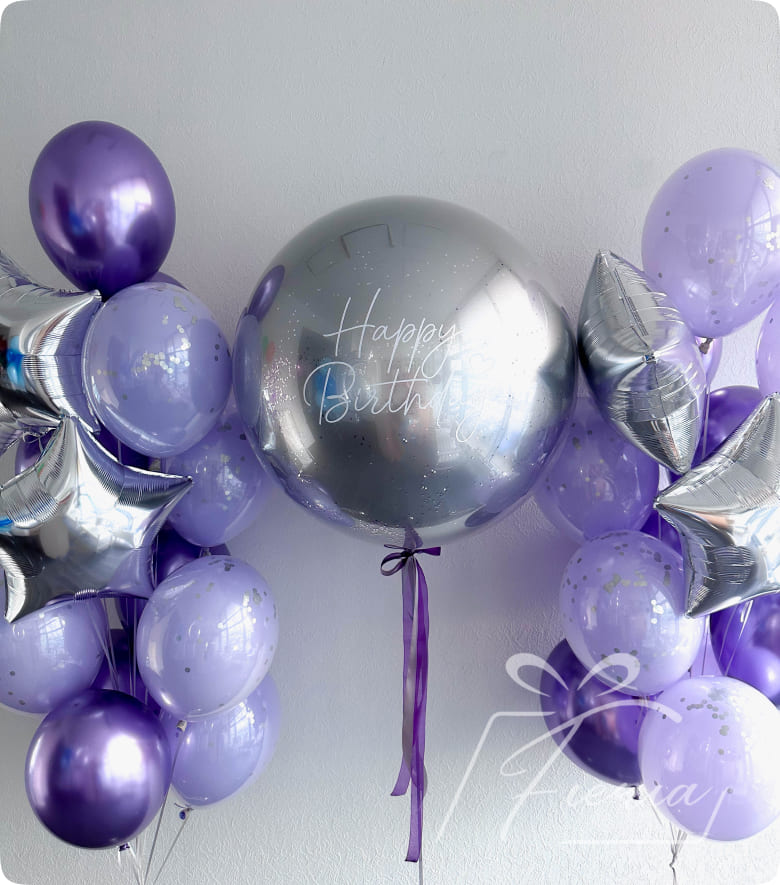 Цифра Фигура большая-2шт Шар бабл с надписью 4 хром 3 пастель